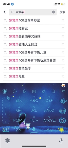 第三步:在屏幕上方输入要查找的关键字,如“家常菜”(还可以根据兴趣爱好输入广场舞、唱歌技巧、钢琴入门等),会立刻列出关于“家常菜”的列表,在列表中选择感兴趣的内容并单击(如图2所示)。