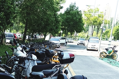 拍摄经过:5月8日,我在晋阳街滨河东路口便道上看到,机动车和非机动车随意停放在非机动车道,不但影响路人通行,还影响市容市貌。在此,希望相关部门加强对该路段的巡查和管理。