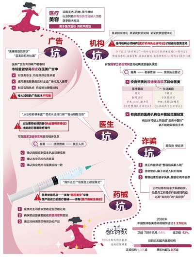 “水光针”“热玛吉”“光子嫩肤”……这些为人熟知的医美项目,背后隐藏着多重风险。近日,《关于进一步加强医疗美容行业监管工作的指导意见》明确规定医疗美容服务属于医疗活动,必须遵守相关法规。如何判断自己的医美服务是否合规?怎么识别变美路上的“坑”?
