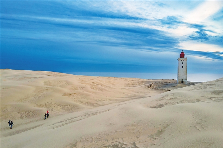 这是5月5日傍晚在丹麦北部的约灵拍摄的鲁比约角灯塔。 为防止海水侵蚀,鲁比约角灯塔在2019年朝内陆方向进行了70米“迁移”。 新华社 发