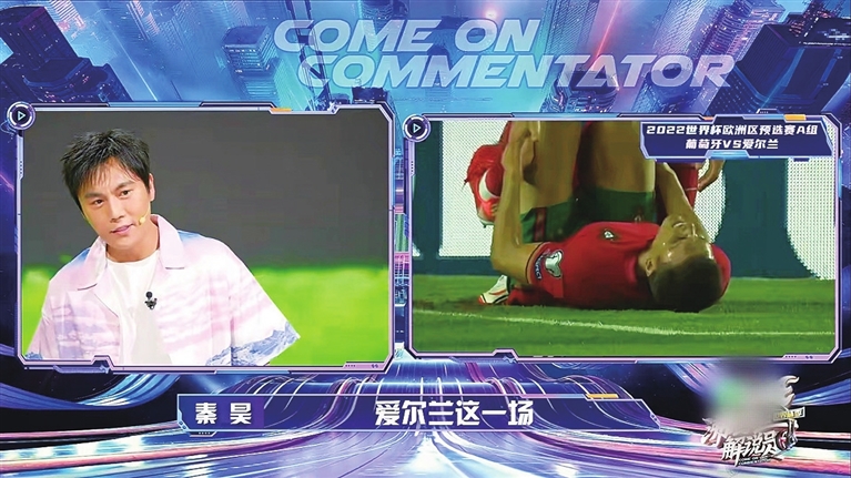 在杨健、刘语熙和詹俊的注视下,他与苏东搭档评述了一个葡萄牙与爱尔兰的比赛片段,虽然仅有寥寥几句,但他对曼联的了解和对英超、英冠的评论,还是显现了知识储备。