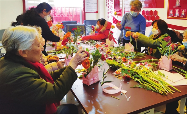 “小刘,来,咱俩一起弄。”73岁的胡奶奶是光华街16号院的老住户,而32岁的刘敏才搬来3个月。老人看出来,这个年轻人有点“认生”,就主动找她搭伴,共同完成一幅插花作品。两个人一边做,一边聊,很快熟络起来。