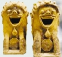 泉州市博物馆藏的清代金门风狮爷大门陶灯座,因两头狮子的造型过于“目瞪口呆”,被网友们推送到评论热门区。细看该文物造型,狮脸眼凸、鼻宽,露齿大笑,令人忍俊不禁。据悉,这件文物是泉州博物馆的网红,曾被网友评为“博物馆里最不‘正经’的文物”。