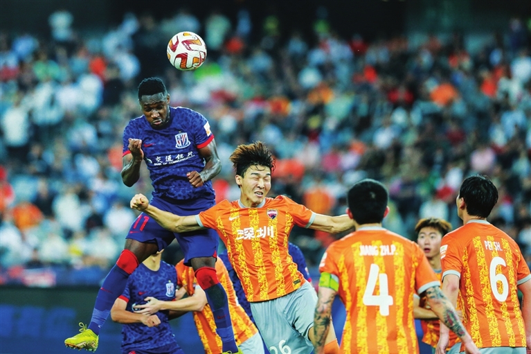 5月9日,在广东深圳举行的2023赛季中国足球协会超级联赛第六轮比赛中,上海申花队客场以3比1战胜深圳队。 新华社 发