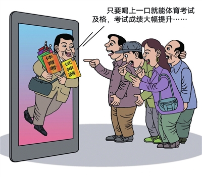 最近,网上有商家叫卖所谓“体育考试神器”的饮品,其实所谓“体育考试神器”,不过是饮品里提高咖啡因含量,青少年服用过量咖啡因,可能造成身体不适,甚至存在中毒危险。别再被“体育考试神器”忽悠了。 (《新京报》5月11日)