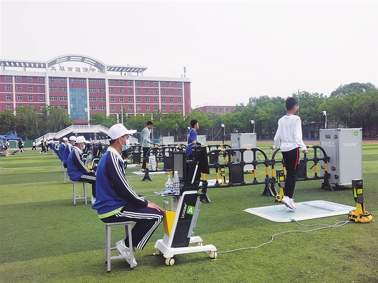 在环操场的看台上,架设了多台无死角的高清摄像机,考场内,每一位正在考试的考生面前也架设了一台高清摄像机。一分钟跳绳使用的是智能型跳绳测试仪,掷实心球使用的是智能型实心球测试仪……每一个项目的场地器材均为智能型测试仪,成绩的记录过程没有人工操作,均由计算机管理。工作人员介绍:“如果考生对成绩有异议,可以现场立即申诉,在裁判、操作员等工作人员的监督下回看录像,对原始成绩进行复核。为了确保考试的公平,操作员每年也会全部更换。”