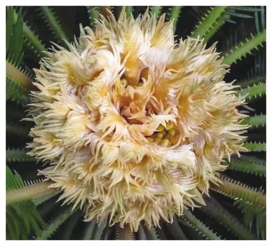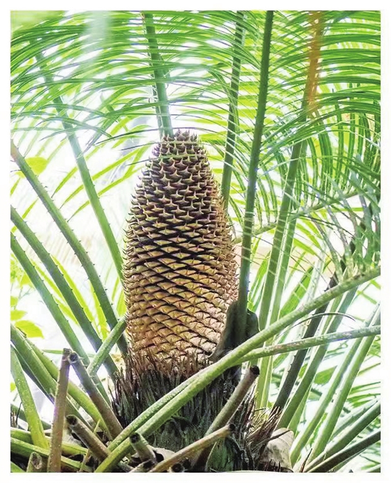 为啥铁树的花朵形态不一?园区工作人员介绍,铁树有雌雄株之分,宝塔形状的为雄株,绣球形状的为雌株。在幼苗时期,很难区分雌雄株,一般在开花后,通过花朵形状来区分,雌花可以结果。铁树通用名是苏铁,为热带植物,一般于夏季开花。铁树喜欢温暖潮湿的气候,不耐寒冷,生长缓慢,寿命长达2000年以上。盆栽铁树开花无规律,且不易看到开花。在南方,人们一般将铁树栽种在庭院里,生长环境合适时,可以每年开花。如果移植到北方,生长就会变缓,开花也变得比较稀少,故有“铁树开花,千载难逢”的说法。这些铁树“入住”植物园后,由于生长环境适宜,首次开花迎宾。