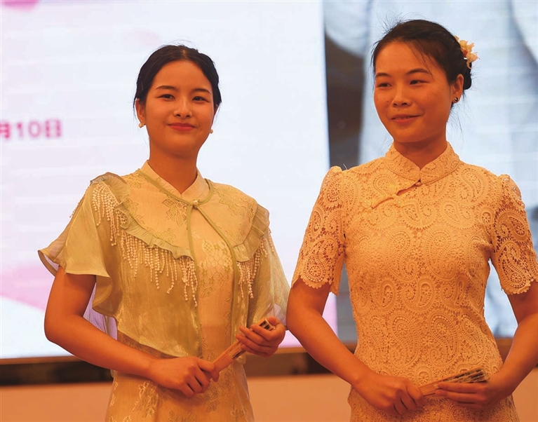 黄小贤(左)在医院庆祝护士节活动中和同事表演中国风服装秀。