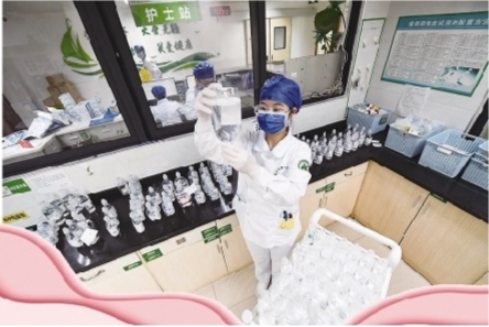 5月10日,在广西南宁市第四人民医院,黄小贤在病房里准备给病人抽血。