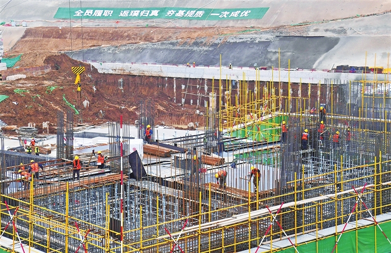 5月14日,太原武宿国际机场三期改扩建工程综合交通中心项目工地,一派忙碌景象。该中心建成后,可实现与轨道交通1号线、3号线、R1线的换乘,极大方便旅客的出行。目前工程已进入地下室结构施工阶段。 赵世凯 摄