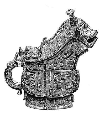 这是1976年山西省灵石县旌介村商代墓葬出土青铜器中最精美的一件。显示出殷商铜器神秘的时代风格。它不但是一件实用器,更是一件了不起的艺术精品。