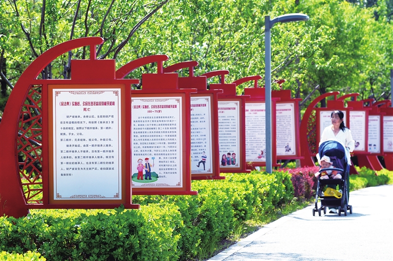 5月16日,小店区司法局在嘉节社区打造的宪法主题公园,成为居民学习和掌握法律知识、零距离接受法治文化熏陶的休闲场所。 牛利敏 摄