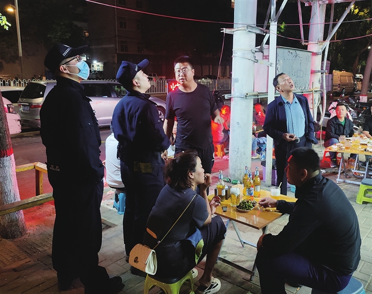 当晚9时许,桥东街大大小小的烧烤摊灯火通明,热闹非凡。桥东派出所夜巡民警走进其中一家店内,检查视频监控设备及消防设施是否完善。发现一处重要位置的监控看不到画面,民警要求店主尽快维修,并对其进行警示教育。