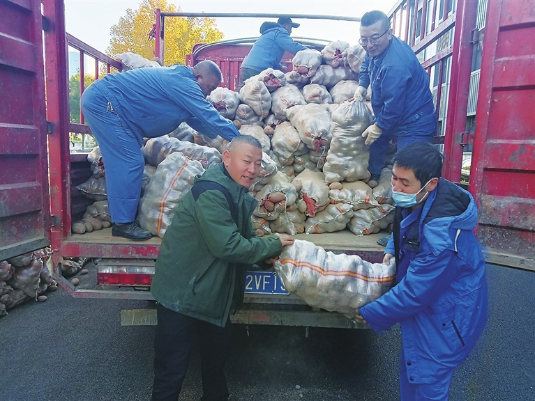 “高书记,咱们今年拉不拉土豆啦?我们可都等着呢!”每年秋天一到土豆收获的季节,村民们便迫不及待来找高捷飞。村里基本上都是老人们,装车找不到装卸工,高捷飞便和帮扶队员们当起了壮劳力,这家30袋那家50袋,凑够一车就往太钢运一车。大娄则村里脱贫户张来拴的20袋土豆已经放入半山腰的窖里了,而老人已经70多岁,高捷飞就帮着他从半山腰用小推车拉下来。王家坪脱贫户70多岁的王奴儿也把土豆放入窖里了,大家就用箩筐帮她从窖里把土豆吊上来,再装入标准袋子。等用毛驴分两次,把住在村里最深最远处的尤四柱的7袋土豆驮出来时,高捷飞脸上的泥土早已被汗水冲出了一道道沟壑……高捷飞说,原本是只想着帮助娄烦村民销售土豆,后来吃到土豆的太钢职工反响出奇地好,不等时间到了就嚷嚷着要买土豆,连职工们的亲戚朋友也都被带动着加入娄烦土豆的“购买大军”。原本一边是发愁销路,一边是期待美食。高捷飞无意间搭起了一座从田间地头到职工餐桌的桥梁,没有了中间商赚差价,娄烦村民和太钢职工都获益良多。