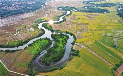 5月以来,位于海口市三十六曲溪两岸的水稻进入夏收时节,一片片成熟的稻田与蜿蜒曲折的河道交织,勾勒出一幅美丽的画卷。 新华社 发