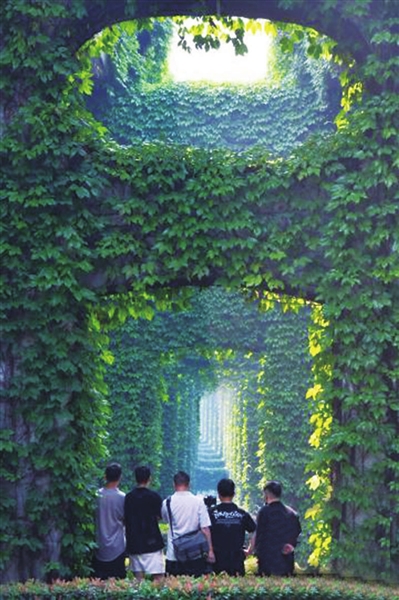 16日,四川成都二环高架李家沱段的桥下,一座座被植被爬满的桥墩形成一处“绿野仙踪”景观,成为网红打卡地后每天吸引不少市民及摄影爱好者拍摄。