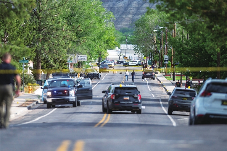 这是5月15日在美国新墨西哥州法明顿市拍摄的枪击事件现场。