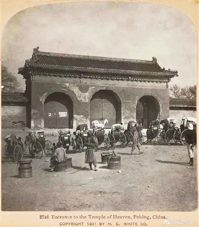 @看老照片:1900年代,北京。天坛门口趴活的人力车夫。