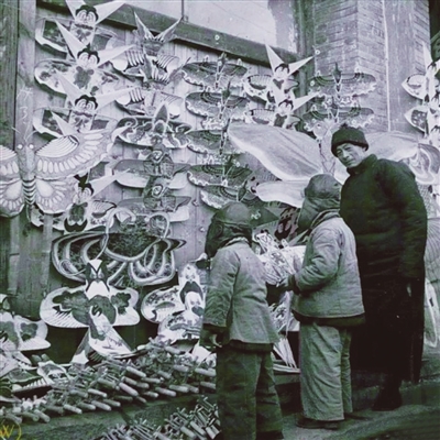 @看老照片:1957年,老北京的风筝摊。穿棉袍的摊主和孩子们互动。