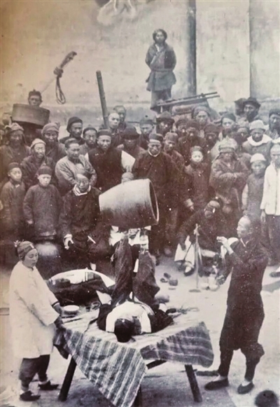@看老照片:1900年代,街头女艺人在表演蹬缸。