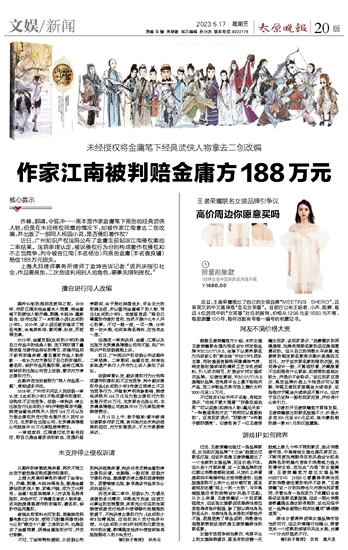 作家江南被判赔金庸方188万元