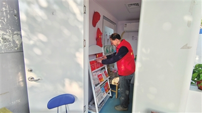 经过一段时间的装饰和整理,5月15日上午,敦化化工路18号敦化坊小区大门口,一个社区报刊亭“开张”了。报刊架上摆放着社区订购的《人民日报》《太原日报》《太原晚报》等报刊杂志及社区藏书,还有很多居民捐赠的儿童读物、书报杂志。70岁的党员孙彦西主动报名志愿者,成为报刊亭的义务管理员。 韩睿 陈芳英 摄