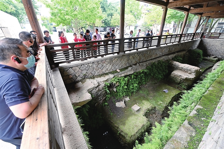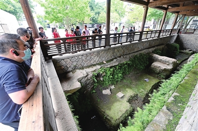 5月16日,游客在福州冶山春秋园的考古发掘区唐代马球场遗址参观。