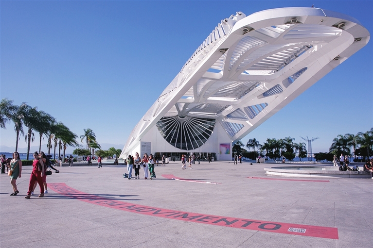明日博物馆坐落在巴西里约热内卢毛阿港,是里约热内卢重要的地标之一,于2015年12月向公众开放。博物馆的主题涵盖气候变化、环境保护、可再生能源、城市规划、生物多样性等领域,通过各种互动展览、实验和数字艺术装置,展示全球面临的挑战和可能的解决方案。 新华社 发