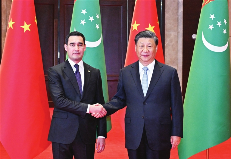 习近平指出,中土建交31年来,两国始终秉持相互尊重、互利共赢原则推进友好合作。今年1月你对中国成功进行国事访问,我们宣布将两国关系提升为全面战略伙伴关系,在双边层面践行命运共同体,翻开中土关系发展新篇章。中国正以中国式现代化全面推进中华民族伟大复兴,土库曼斯坦正朝着“强国的新时代复兴”目标迈进,中土关系发展潜力巨大,前景广阔。中方愿同土方一道努力,把两国关系不断推向前进,更好造福两国人民。
