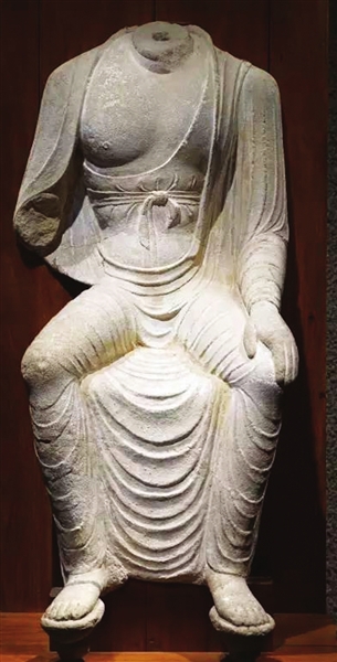 这个博物馆里有不少天龙山石窟的文物。天龙山石窟包括东魏至唐代各时期所开凿的24个石窟,雕刻有200多尊佛像、菩萨像等等。1920年代,日本古董商山中商社勾结当地和尚,短短几年就将石窟的石刻尽数盗卖。