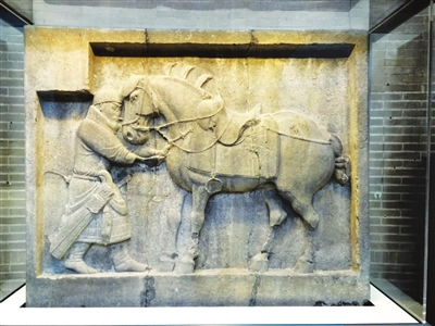 宾大博物馆藏有唐代昭陵六骏石刻中的“飒露紫”和“卷毛騧”。“六骏”是指唐太宗李世民统一天下、转战沙场时所骑的六匹战马。因唐太宗非常喜爱这六匹马,于是令画家阎立本先把“六骏”形象画出,然后再让石刻家阎立德刻在石屏上。1914年,这“二骏”被国内的古董商卢芹斋以12.5万美元盗卖到国外,如今已经成为人们念念不忘的“明星”。