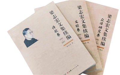 父亲写作最早给我留下深刻印象的,是1980年代初举家搬到老军营小区不久,他那首《检察长的眼睛》在《诗刊》头条发表并获奖。一向内敛的爸爸把获奖证书摆在组合柜玻璃架上,“显摆”了好几天。那时我正读中学,有时翻看爸爸的写诗本,歌颂祖国和时代的居多,写城市建设的《破土》,还有《我与长城合影》,都用彩笔改了好多句子。延续到新世纪以来,收在“文集续编”诗歌卷的作品,仍然流淌着炽热的家国情怀。正如杜学文老师在《梁志宏文集续编》序中强调,“他追求的是一种超越个体而力图把个体体验与社会生活融合统一的‘大诗歌’形态”,确实是把准了文脉。我读着书中获得首届全国绿风诗歌奖的《国魂浩荡》,以及《又临壸口瀑布》等,深深感受到古稀老人那颗热血澎湃的心。