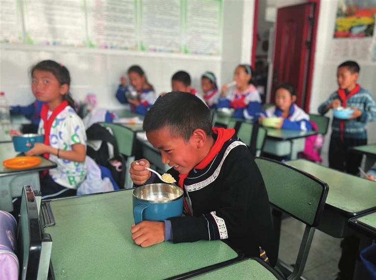 农村义务教育学生营养改善计划的“一餐饭”,改变了农村孩子过去“冷菜冷饭”“豆芽拌饭”的状况,逐步实现从“吃得饱”到“吃得好”转变。校长孟先林说,营养餐改善了山区孩子的身体状况,孩子们长高、变壮实了。