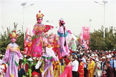 “乡集味”酿出向往的味儿。“灌肠、面皮、凉糕、切条,好吃还实惠!”花田对面,白墙灰瓦的巷子里,如乡村大集一样,小摊小贩或比邻或群聚,引得穿行村子的人流随机分离聚合。有能说会道的老汉,有腼腆羞涩的青年,有老传统的杂粮炒面,有老味道的黄瓜番茄,丝毫不浪费费尽心思吸引来的观光热潮。村子居中,是据碑记始建于金代的圣母庙,周边散布七处明清古宅,其中最具规模的陈家大院深邃富丽、砖雕精绝。再往远处,是占地面积1300余亩的高标准日光温室、天桥式拱棚,每年生产蔬菜2800万斤,仅设施蔬菜一项,人均增收过万元。