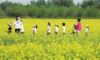 在油菜花田里随手拍美照,“打卡”风车、卡通气模等景观小品——如节庆宣传所说,也不妨体会一下田园风光背后的“诸味杂陈”,或许有着乡村振兴的密码。