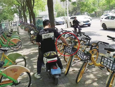 拍摄经过:5月16日,我途经平阳路与亲贤西街交叉口东南角一处公共自行车租赁点时,看到一名骑电动车的男子正在往路边共享单车车筐内贴“小广告”。在此,希望相关部门加强对乱贴“小广告”者的管理,遏制这种不文明行为。