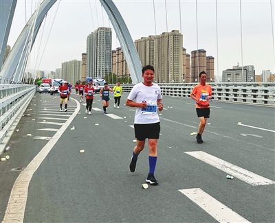 大概是前一天耗费了过多精力,马拉松赛道上赵趋的成绩不及自己的正常水平,跑到北中环桥31公里处时,他已非常疲惫,但仍坚持着。“千里迢迢而来,我得坚持到最后,而且周围的景色也吸引着我跑下去,多看看。”