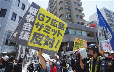 活动组织方在声明中说:“G7广岛峰会是战争会议,宣称向乌克兰提供军事援助、激化和扩大俄乌冲突,这样的峰会我们决不容忍!”