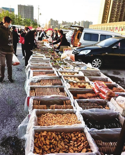 我们村的集,规模并不大,但琳琅满目的商品,还是让人有种目不暇接之感。我一路走走停停,除见到有现滚现卖的元宵摊、现炸现卖的臭豆腐摊、现爆现卖的膨化玉米摊、现榨现卖的香油摊、现磨现卖的芝麻糊摊外,还有几个拉了满车苹果、山药蛋、芒果在叫卖的,是独一摊点外,其余的摊位,则几乎都是或就地,或支铺,一摆一长溜。蔬菜、水果就不要说了,其余干果、杂粮、腌菜、作料、糕点、面包、糖果、厨具、鞋袜……每个摊摊上都是十几二十种商品。有些品种,像我这种平时不常买东西的,连名儿也叫不上来。比如,在那个调味品摊位前,我站了好大一会儿,有几种调料根本认不得。一种模样似花椒,却是绿色的小颗粒,问了摊主,才知叫麻椒。其余几个,知道问了也记不住,索性便没问。还有些摊位,商品虽单一,但却分了三六九等,也是摆了一长溜。比如一个卖红枣的,一排五个塑料箱,尽管全是枣儿,但个头有大有小,价格从10元3斤到12元1斤不等。我见这个摊位前围了些人,便在旁边站了下来。看见几个人七嘴八舌与摊主搞了半天价,那个12元1斤的,搞到了10元1斤,三四个人或多或少都买了点。一圈转下来,拍了不少照片。碰到的人,无论熟识的、还是陌生的,不管步行的、还是推着自行车的,大多手上都提着点东西。像我这种两手空空的,极少。