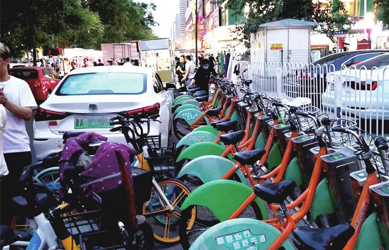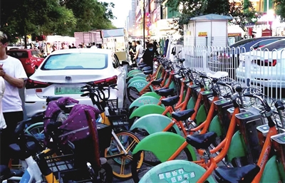 拍摄经过:5月17日晚,我在千峰南路与沙沟南街交叉口西北角的公共自行车租赁点还车时,看到一辆白色轿车停在租赁点前,不但堵了便道,还将五六辆公共自行车堵在租赁点内。在此希望交警部门加大对该路段的巡查力度,及时处置这种交通违法行为。