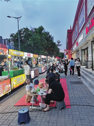 聚拢来是烟火,摊开来是人间,市集极大地丰富了市民的生活,同时也给商户们带来了可观收益。“今年4月初我确定了摊位位置,下手晚了好位置就怕没了。白天上班,晚上就出来摆摊,平均每晚都能赚上二三百元,累点不怕,能赚钱比啥都乐和。”臭豆腐摊主一边忙活,一边兴奋地说。