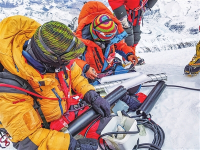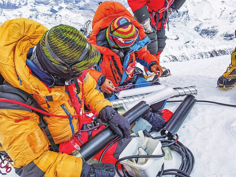这是我国珠峰科考继2022年之后,再次突破8000米以上海拔高度。当日,科考队员在珠峰峰顶利用科学仪器,采集珠峰峰顶的雪冰样品,用于分析气候环境指标。