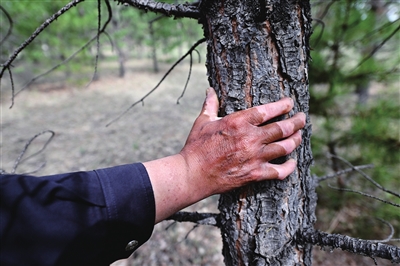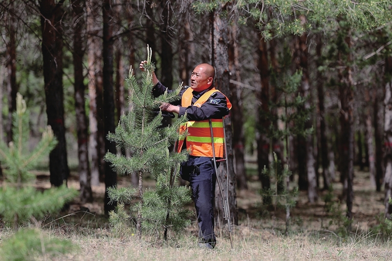 在这片万亩林海里,马裕刚参加工作时和造林工一起种下的樟子松、油松,如今已树干粗壮,枝叶扶疏。“这里很多树都是护林员和造林工一锄一锹种下的,我要守护好这片林,一定要保护好。”马裕说。
