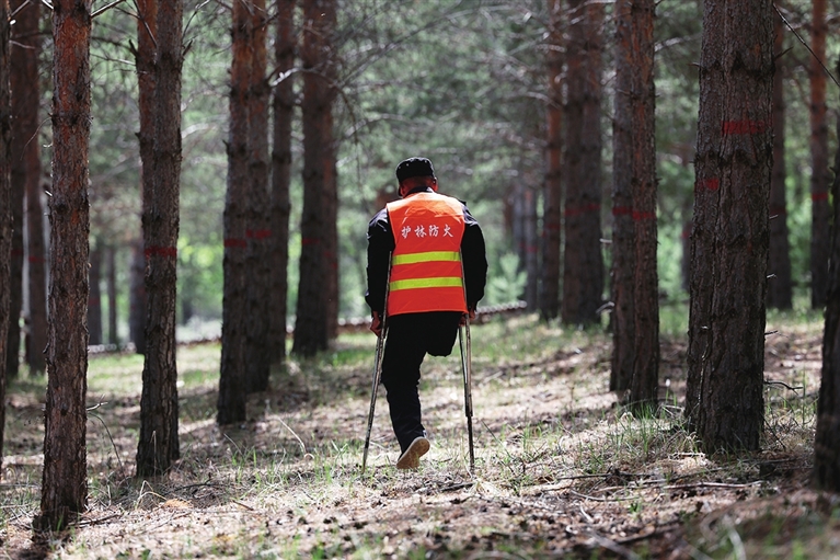 今年54岁的马裕是山西省桑干河杨树丰产林实验局梁家油坊中心林场九连山分区的一名护林员。12岁时因为一场意外失去了右腿,马裕选择坚强地直面逆境,25岁开始当护林员的他,用拐杖和左腿丈量林场的沟沟岔岔,练就了一双“火眼金睛”,也练就了“铁腿”。在这片林海里,一守就是29年。
