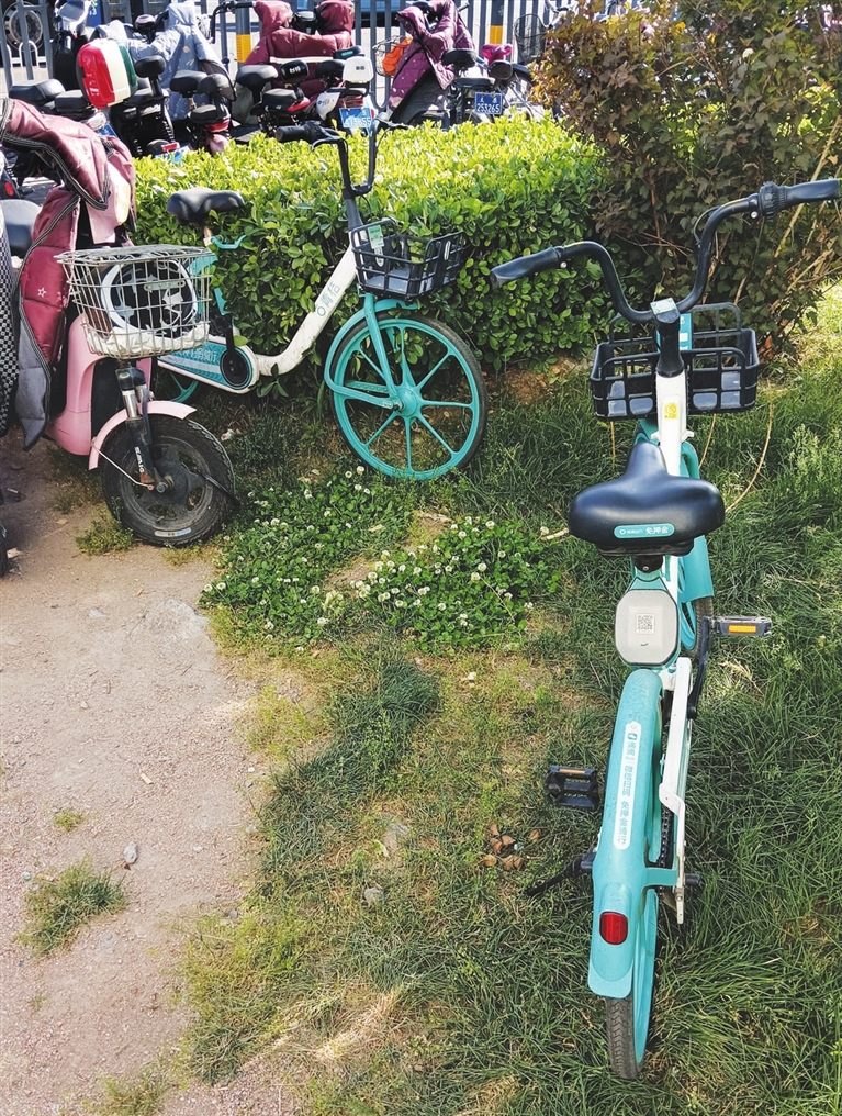 5月22日,解放南路体育馆地铁站旁,一些市民将电动自行车和共享单车随意停放到路边绿化带内。这种不文明行为不但对草坪造成破坏,还影响市容市貌。在此,希望大家爱护环境,共同营造和谐美丽的城市环境。
