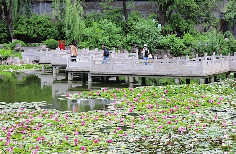 5月28日,文瀛公园的千余株睡莲竞相绽放,婉约可人,吸引市民前来欣赏。张昊宇 摄