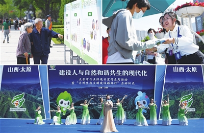 6月3日,由市委宣传部、市生态环境局、市园林局主办的太原市六五环境日宣传系列活动暨“并州生态文明建设媒体行”启动仪式在龙潭公园举行。活动现场通过布置宣传展板、发放宣传图册、文艺表演等形式,号召更多人参与到生态文明建设中来。 邓寅明 摄
