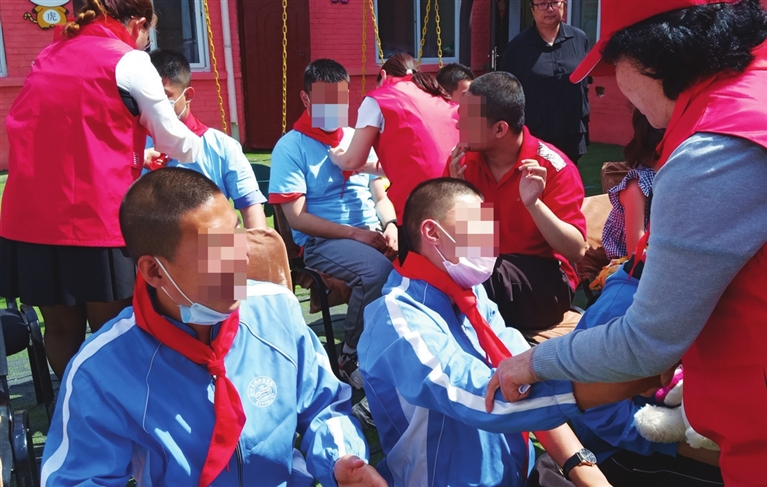 6月5日,市关爱下一代志愿者协会联合爱心企业来到岗霖社区爱心助残服务中心开展特殊困境儿童慰问活动。活动中,志愿者们给孩子们带来了衣服、牛奶等慰问品,让他们感受社会的温暖。 牛晨阳 摄