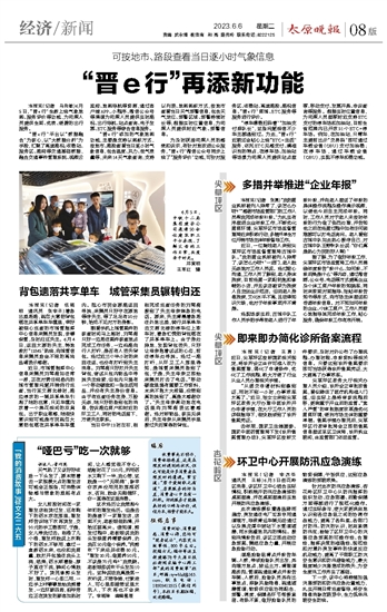 “晋e行”添加的气象地图功能,主要是支持以图标方式,按地市、路段查看当日逐小时气象信息,包含温度、风力、空气质量等,未来14天气象查询;支持以列表、地图图标方式,按地市查看当日天气预警信息,包含天气定位、预警区域、预警持续时长等;根据实时位置信息,为司乘人员提供附近气象、预警信息。