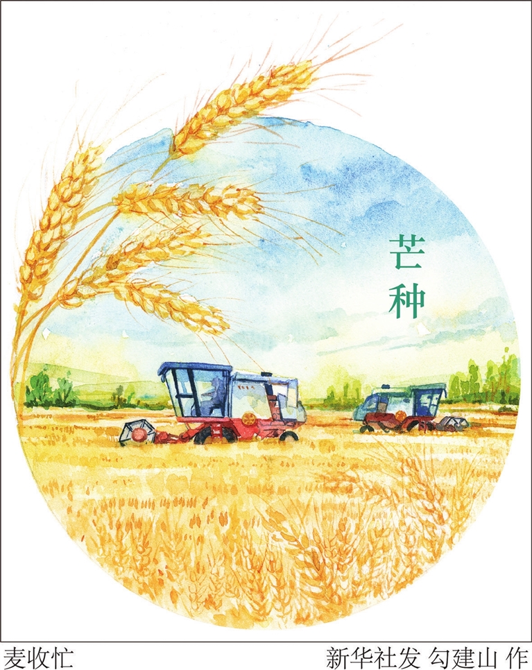 中国民间文艺家协会会员、中国民俗学会理事袁瑾介绍,芒种到来意味着“三夏”大忙季节拉开了帷幕。一时间,夏熟的要收、秋收的要播、春种的要管,忙得不可开交。“麦收如战场”,这个“忙”,带着一种与时间争分夺秒的紧迫感,正所谓“春争日,夏争时”。南宋诗人陆游在《时雨》中生动地描绘了这种繁忙景象:“时雨及芒种,四野皆插秧。家家麦饭美,处处菱歌长。”